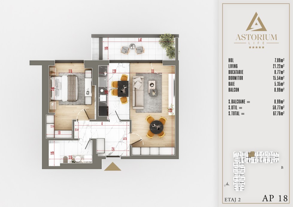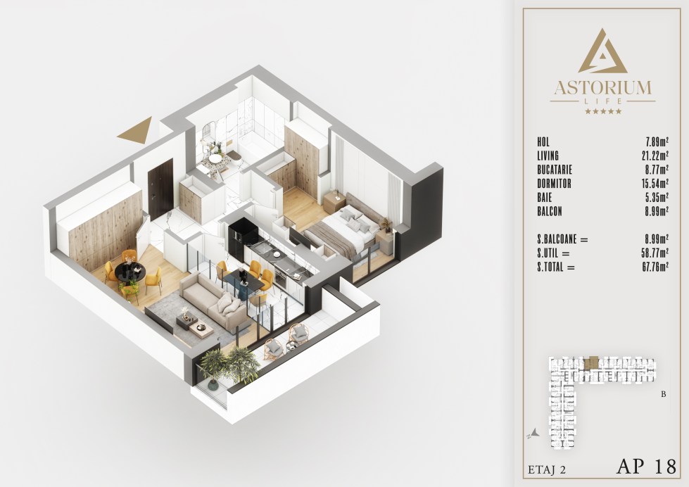 Apartament 2 camere Bloc B etaj 2 nr. 18 – Astorium Life