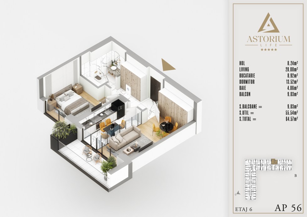 Apartament 2 camere Bloc B etaj 6 nr. 56 – Astorium Life