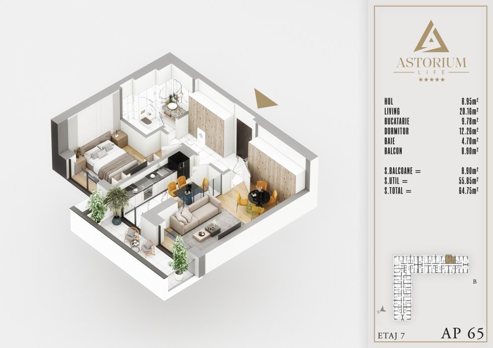 Apartament 2 camere Bloc B etaj 7 nr. 65 – Astorium Life