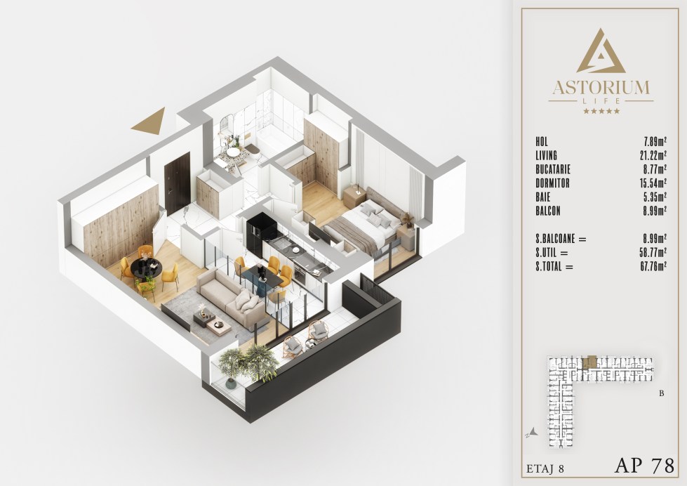 Apartament 2 camere Bloc B etaj 8 nr. 78 – Astorium Life