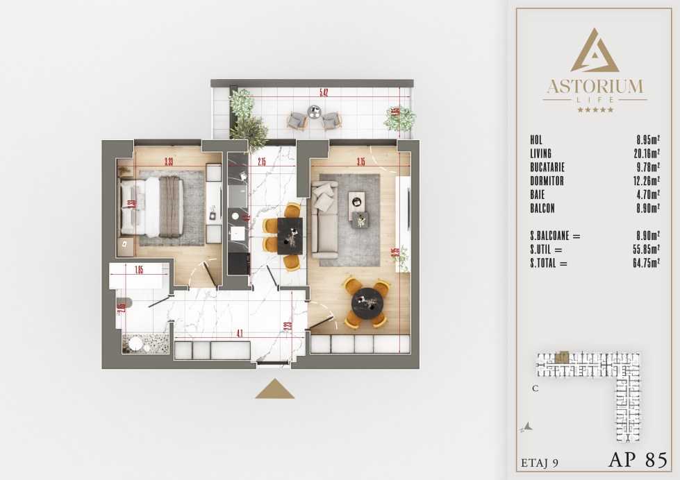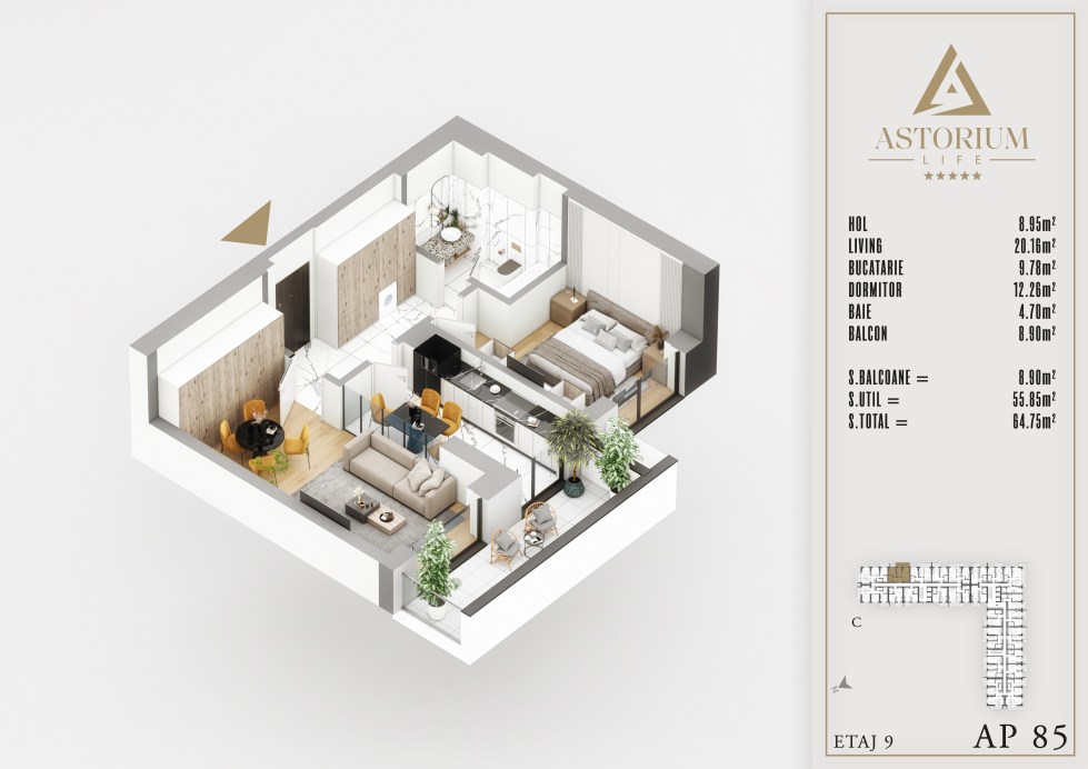 Apartament 2 camere Bloc C etaj 9 nr. 85 – Astorium Life