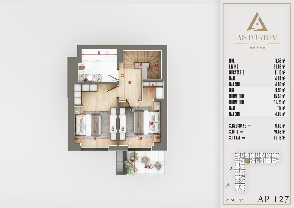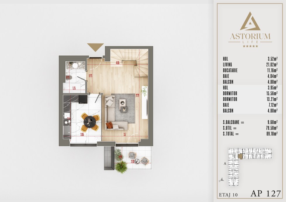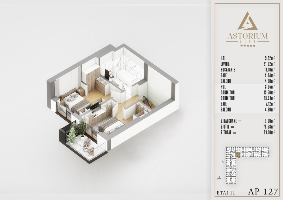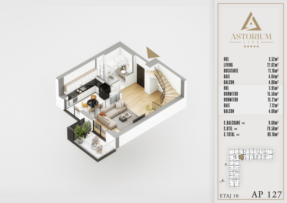 Apartament 3 camere Bloc A etaj 10 Inf +Sup nr. 127 – Astorium Life