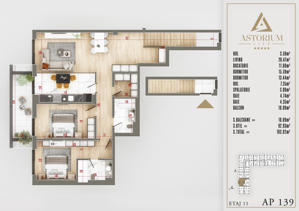 Apartament 3 camere Bloc A etaj 10 Inf +Sup nr. 139 – Astorium Life