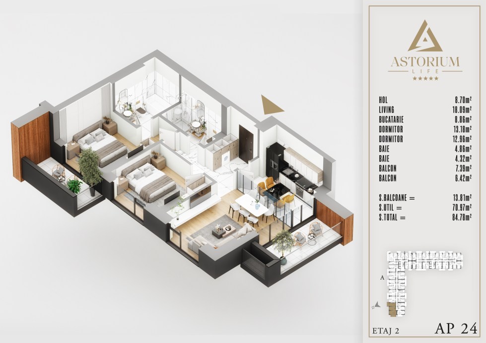 Apartament 3 camere Bloc A etaj 2 nr. 24 – Astorium Life