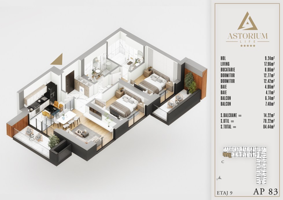 Apartament 3 camere Bloc C etaj 9 nr. 83 – Astorium Life