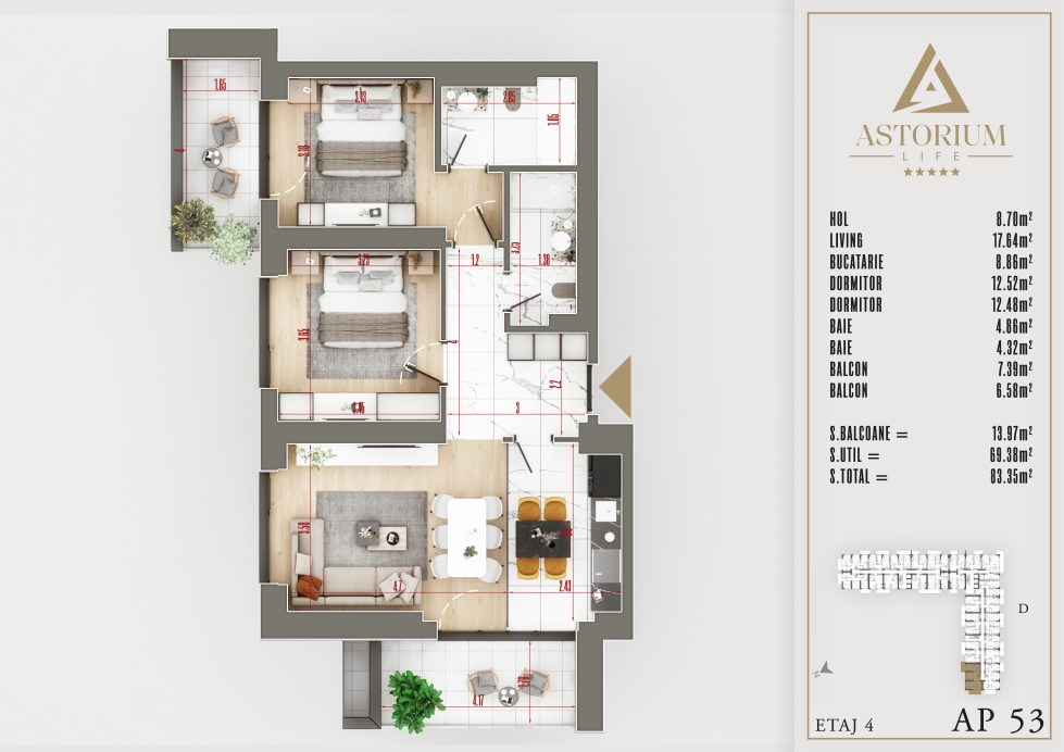 Apartament 3 camere Bloc D etaj 4 nr. 53 – Astorium Life