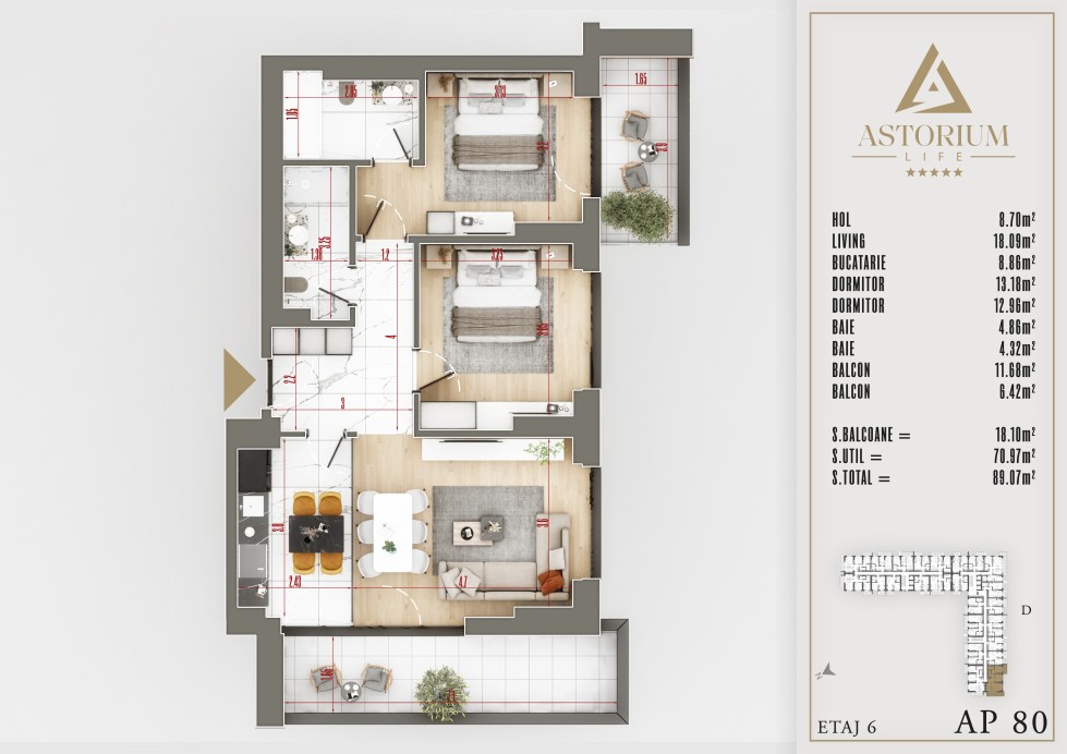 Apartament 3 camere Bloc D etaj 6 nr. 80 – Astorium Life