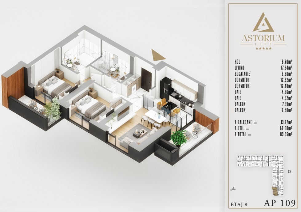 Apartament 3 camere Bloc D etaj 8 nr. 109 – Astorium Life