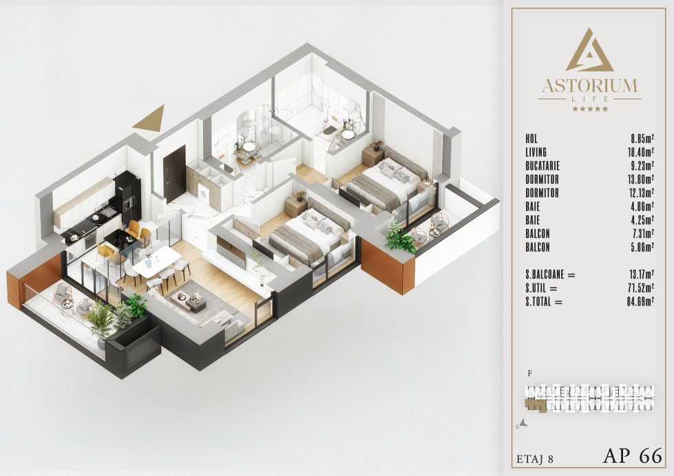 Apartament 3 camere Bloc F etaj 8 nr. 66 – Astorium Life