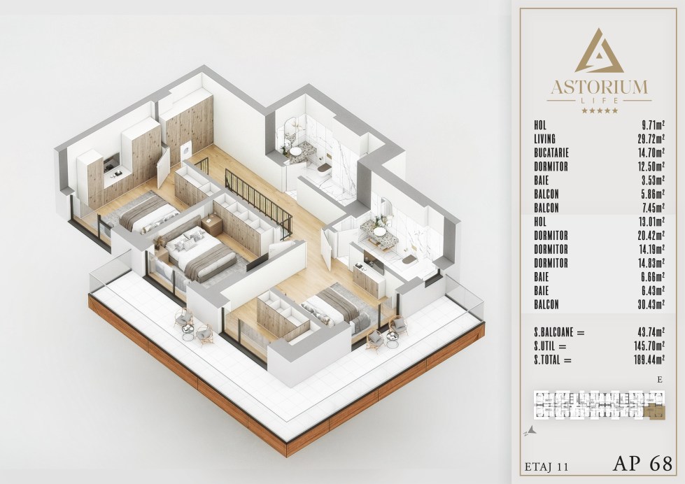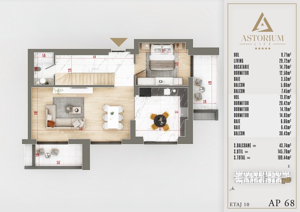 Apartament 5 camere Bloc E etaj 10 Inf +Sup nr. 68 – Astorium Life