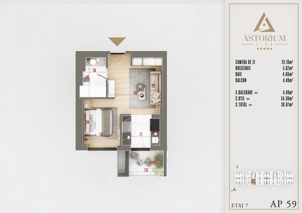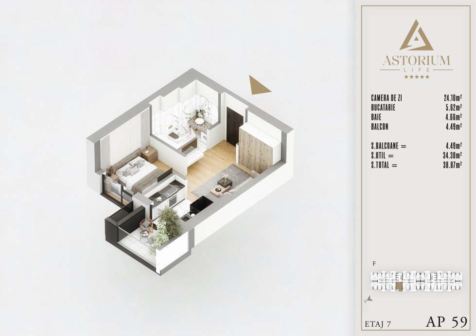 Apartament Garsoniera camere Bloc F etaj 7 nr. 59 – Astorium Life