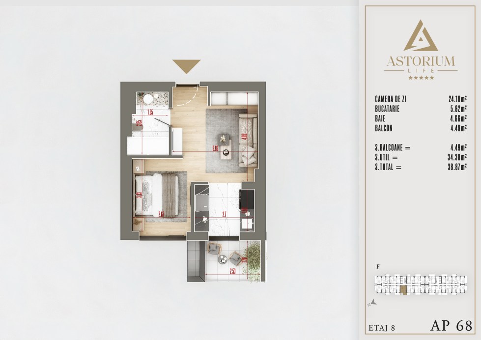 Apartament Garsoniera camere Bloc F etaj 8 nr. 68 – Astorium Life