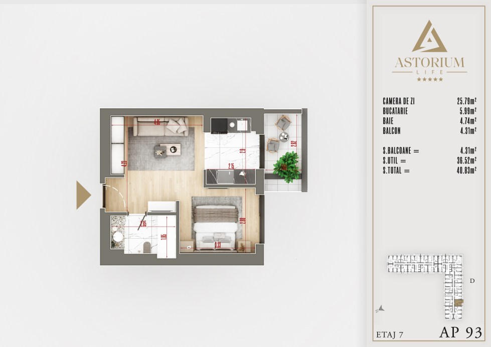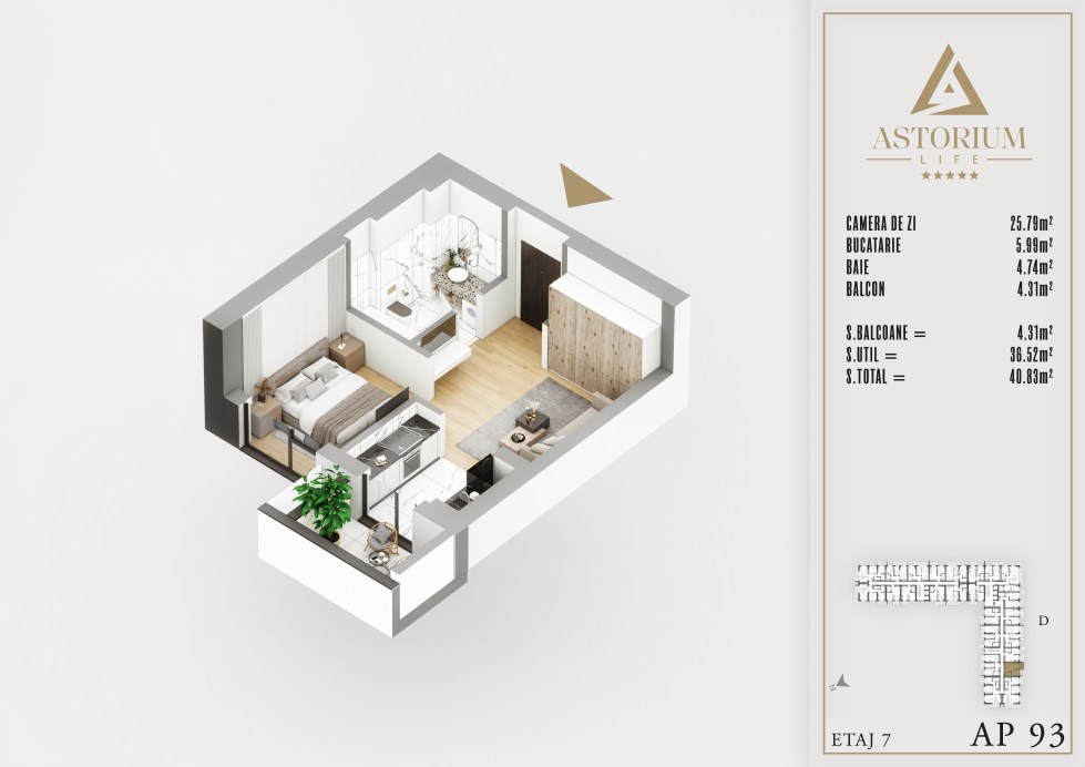 Apartament Garsoniera camere Bloc D etaj 7 nr. 93 – Astorium Life