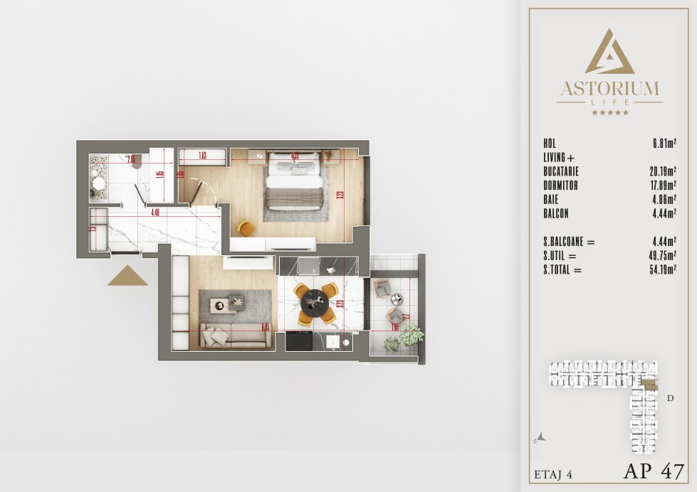 Apartament Studio camere Bloc D etaj 4 nr. 47 – Astorium Life