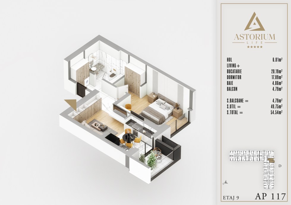 Apartament Studio camere Bloc D etaj 9 nr. 117 – Astorium Life