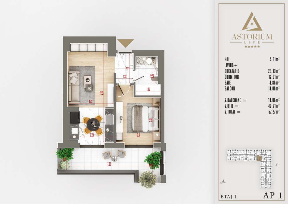 Apartament Studio camere Bloc D etaj 1 nr. 1 – Astorium Life