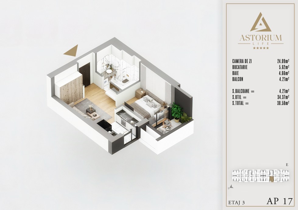 Apartament Garsoniera camere Bloc E etaj 3 nr. 17 – Astorium Life