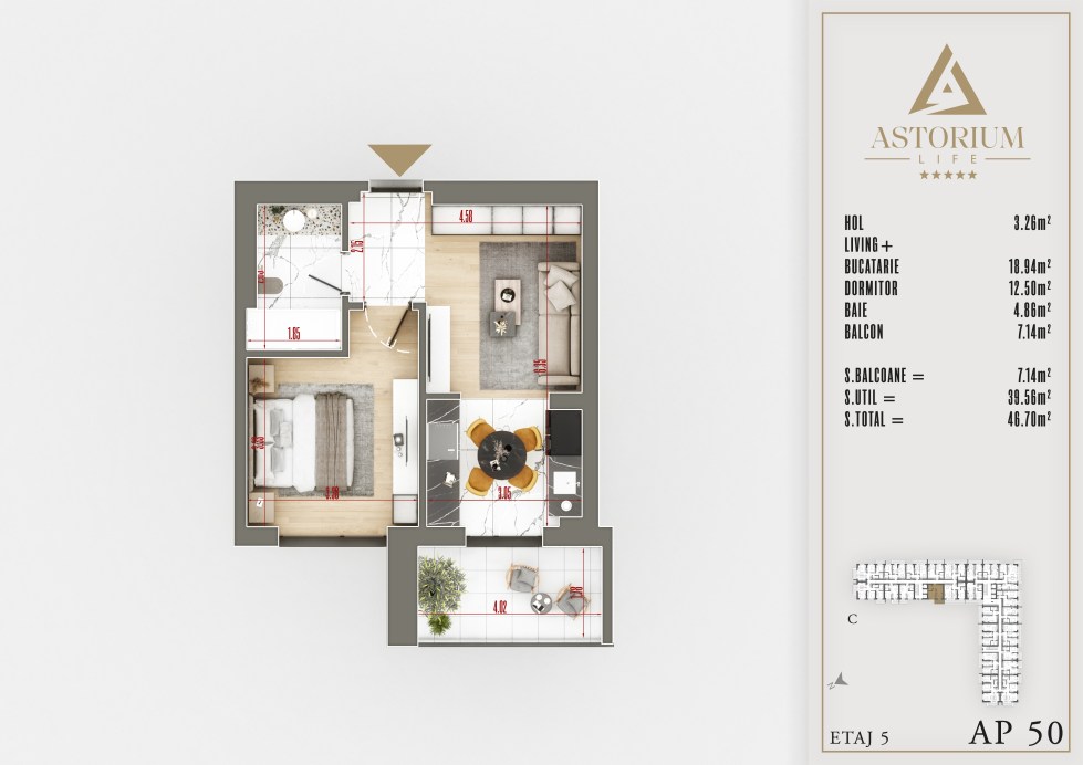 Apartament Studio camere Bloc C etaj 5 nr. 50 – Astorium Life