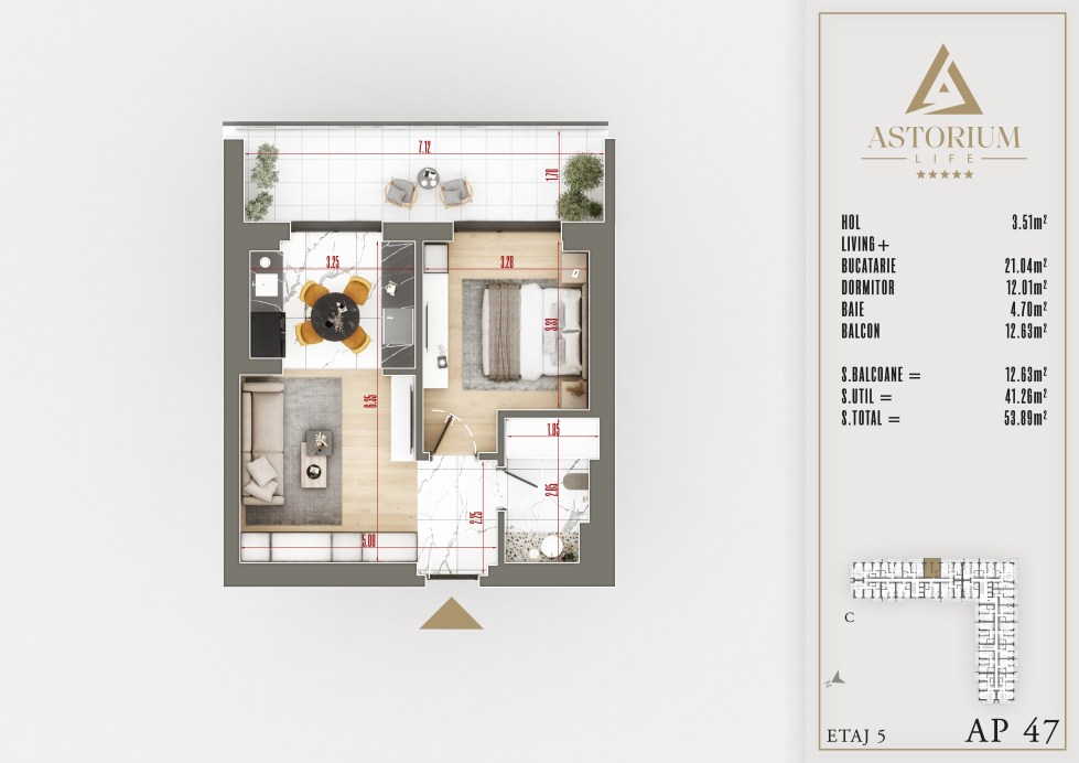 Apartament Studio camere Bloc C etaj 5 nr. 47 – Astorium Life
