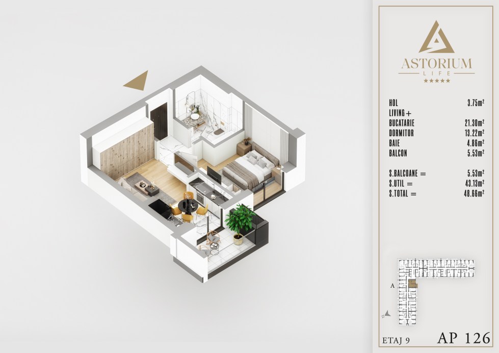 Apartament Studio camere Bloc A etaj 9 nr. 126 – Astorium Life