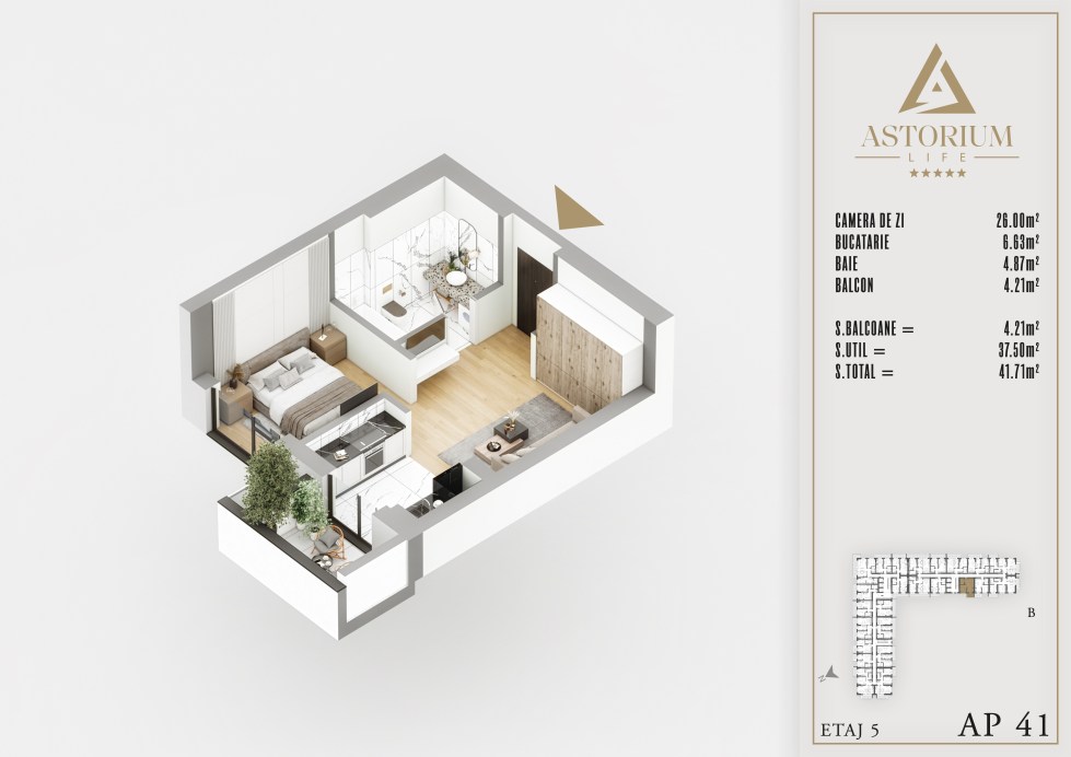 Apartament Garsoniera camere Bloc B etaj 5 nr. 41 – Astorium Life