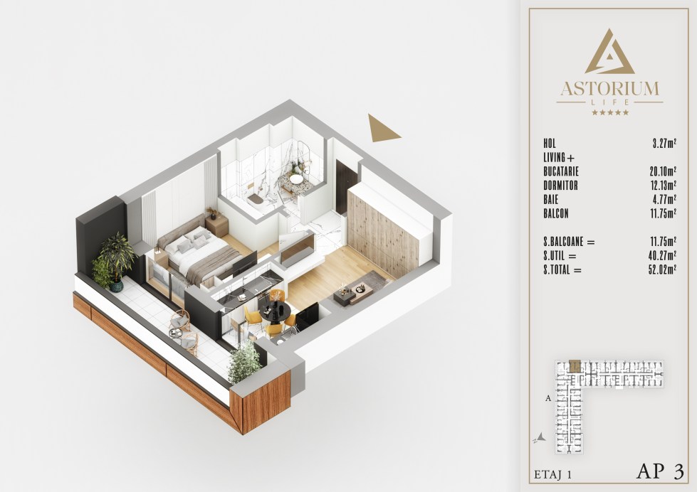 Apartament Studio camere Bloc A etaj 1 nr. 3 – Astorium Life