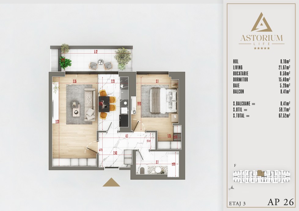 Apartament 2 camere Bloc F etaj 3 nr. 26 – Astorium Life