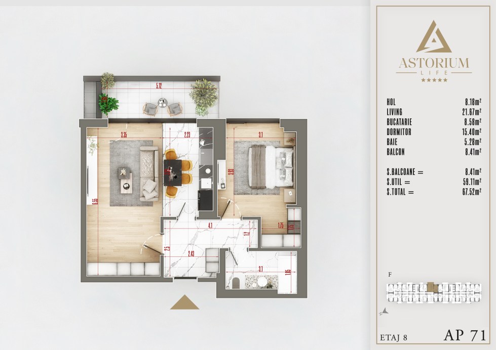 Apartament 2 camere Bloc F etaj 8 nr. 71 – Astorium Life
