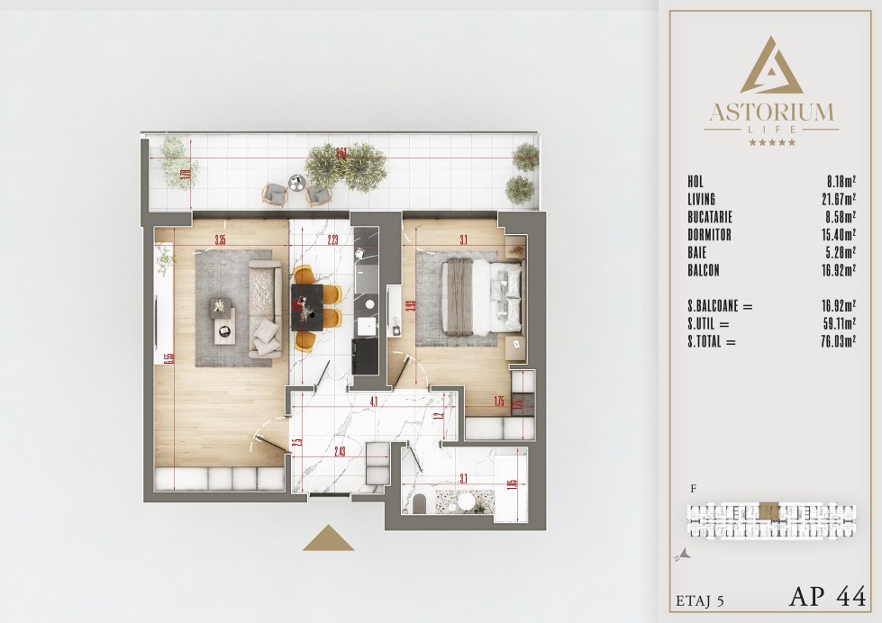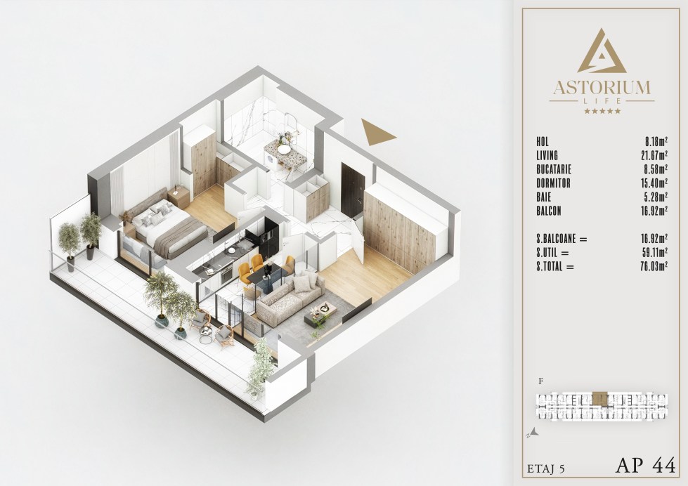 Apartament 2 camere Bloc F etaj 5 nr. 44 – Astorium Life