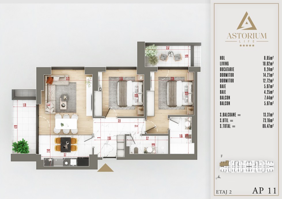 Apartament 3 camere Bloc F etaj 2 nr. 11 – Astorium Life