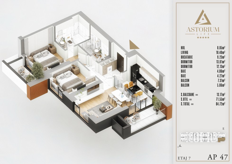 Apartament 3 camere Bloc E etaj 7 nr. 47 – Astorium Life