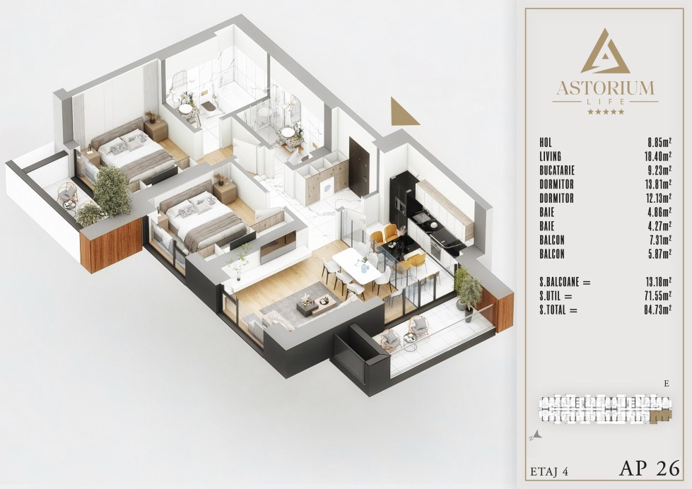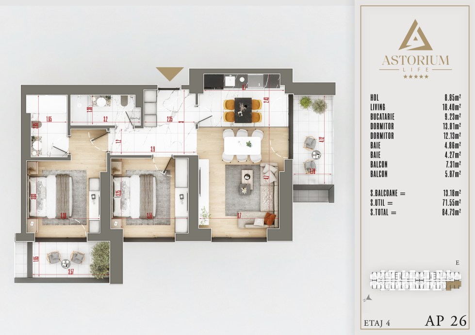 Apartament 3 camere Bloc E etaj 4 nr. 26 – Astorium Life