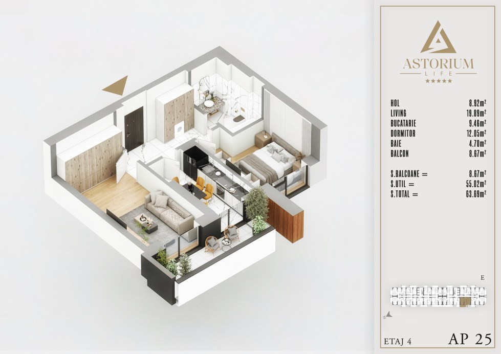 Apartament 2 camere Bloc E etaj 4 nr. 25 – Astorium Life
