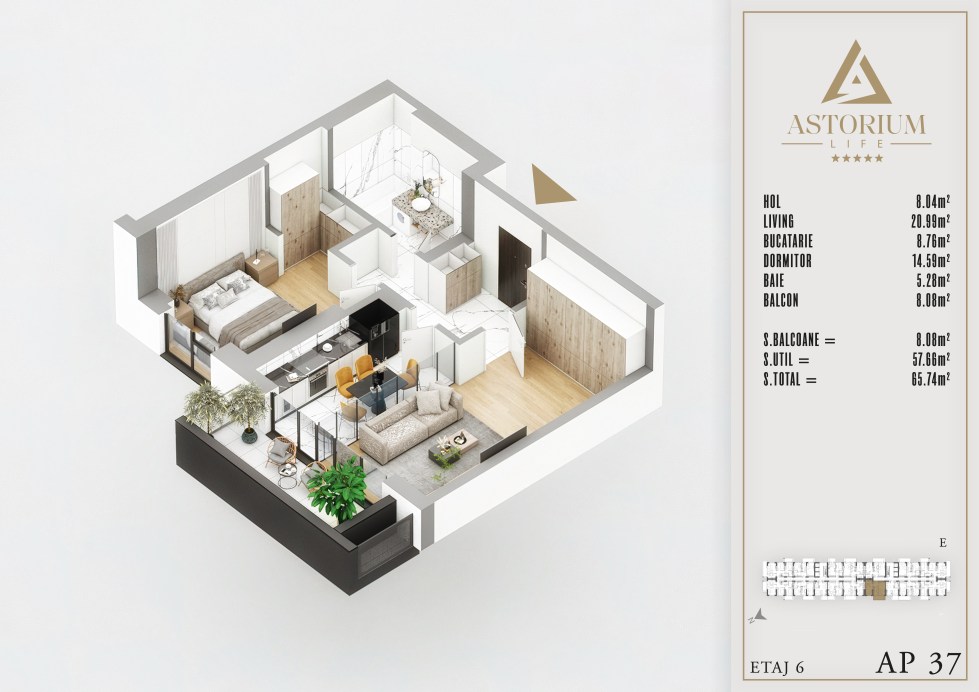 Apartament 2 camere Bloc E etaj 6 nr. 37 – Astorium Life