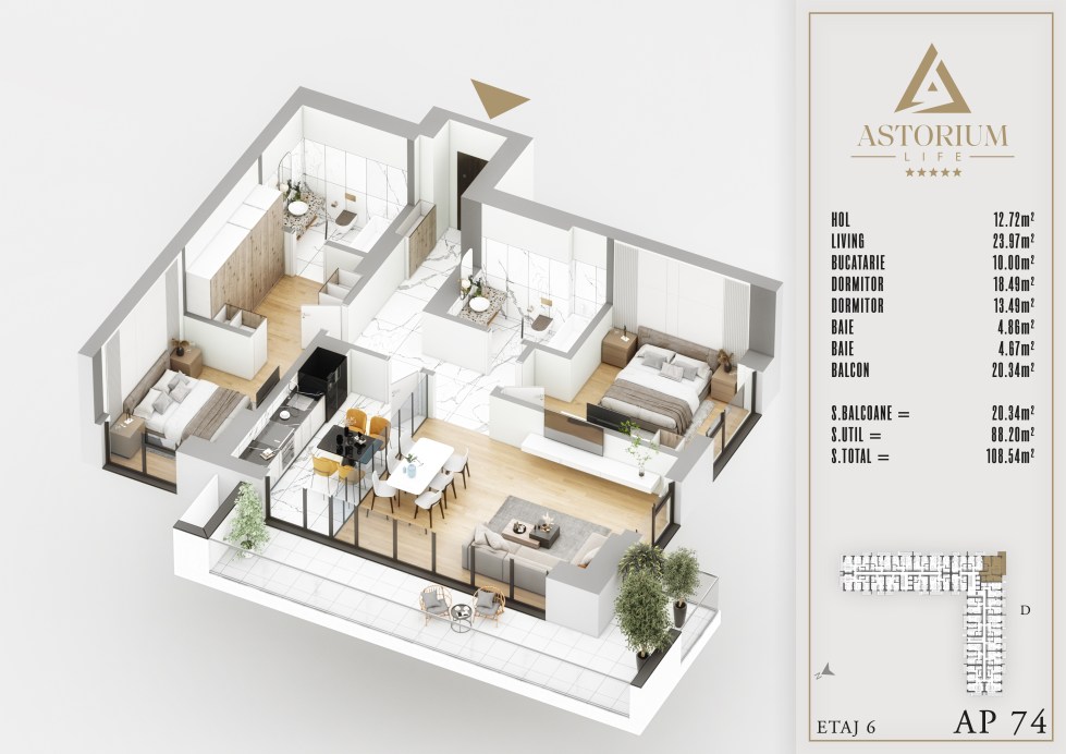 Apartament 3 camere Bloc D etaj 6 nr. 74 – Astorium Life