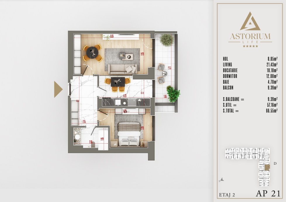 Apartament 2 camere Bloc D etaj 2 nr. 21 – Astorium Life