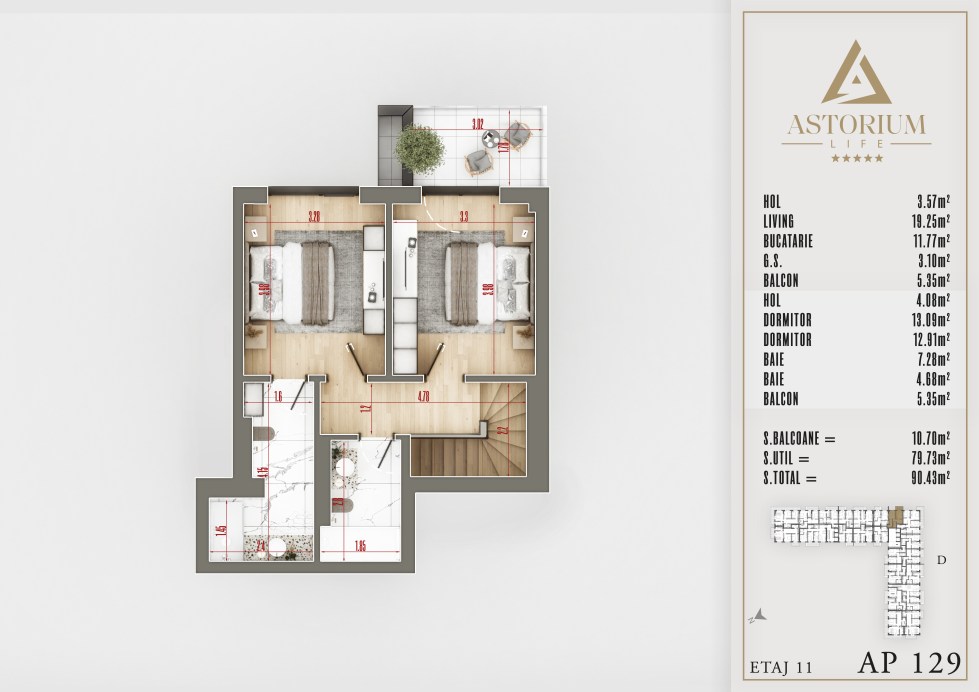 Apartament 3 camere Bloc D etaj 10 Inf +Sup nr. 129 – Astorium Life
