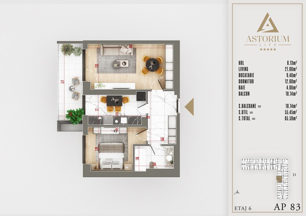 Apartament 2 camere Bloc D etaj 6 nr. 83 – Astorium Life