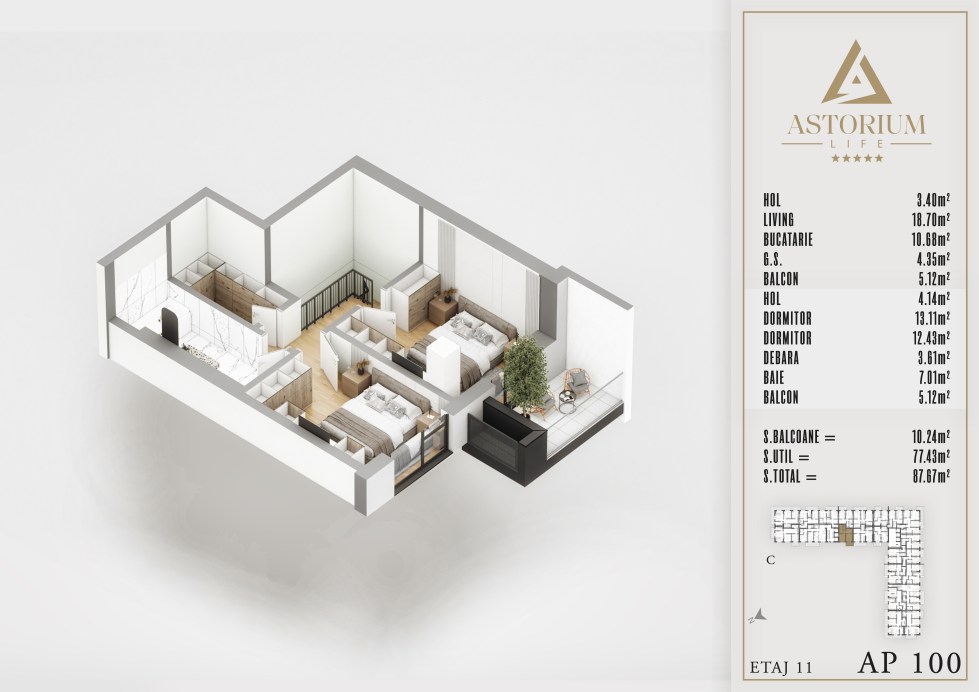 Apartament 3 camere Bloc C etaj 10 Inf +Sup nr. 100 – Astorium Life