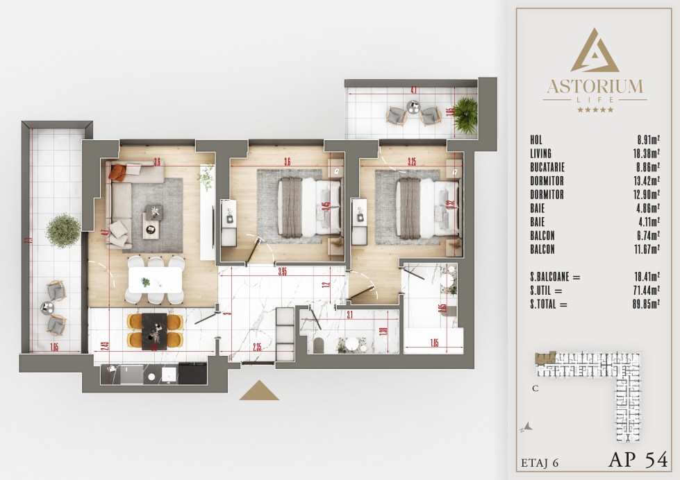 Apartament 3 camere Bloc C etaj 6 nr. 54 – Astorium Life