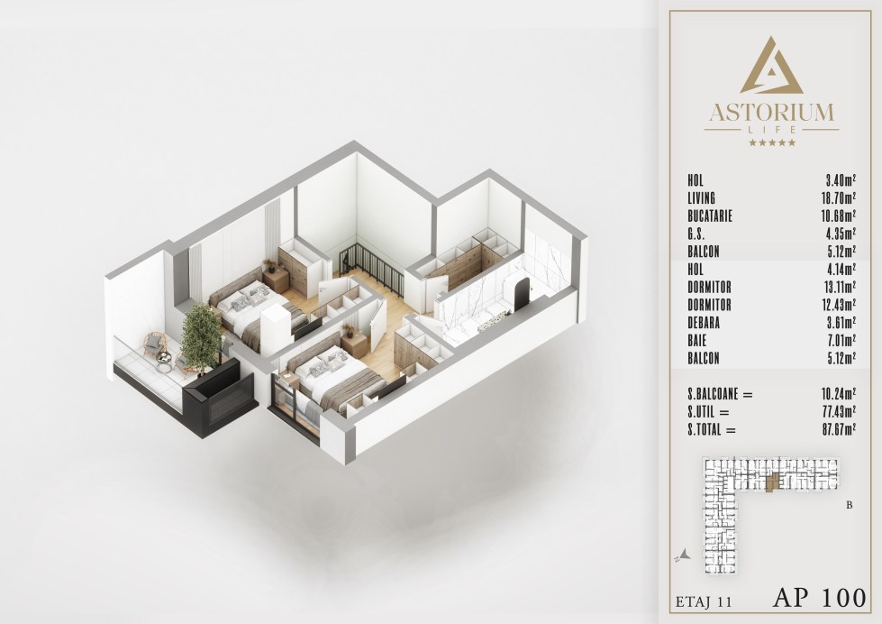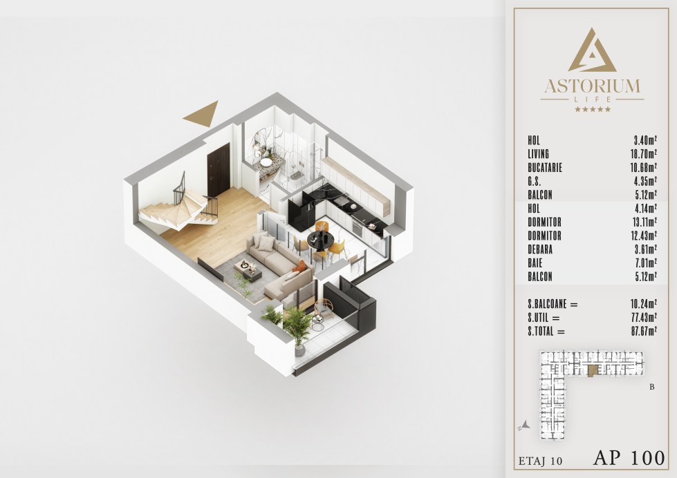 Apartament 3 camere Bloc B etaj Duplex nr. 100 – Astorium Life