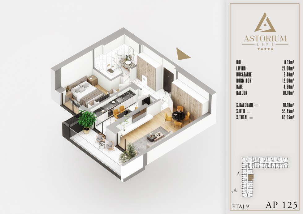 Apartament 2 camere Bloc A etaj 9 nr. 125 – Astorium Life