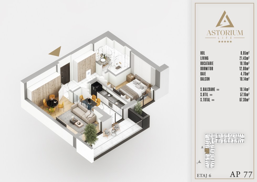 Apartament 2 camere Bloc A etaj 6 nr. 77 – Astorium Life