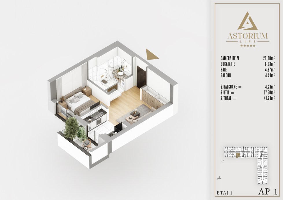 Garsoniera Bloc C etaj 1 nr. 1 – Astorium Life