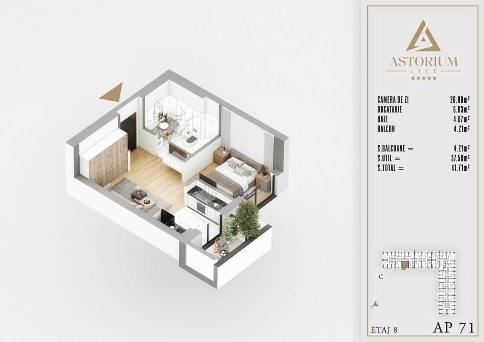 Garsoniera Bloc C etaj 8 nr. 71 – Astorium Life