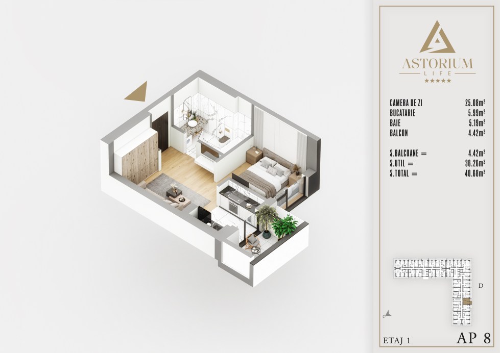Garsoniera Bloc D etaj 1 nr. 8 – Astorium Life