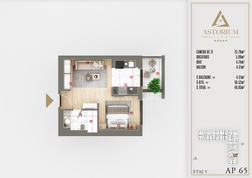 Garsoniera Bloc D etaj 5 nr. 65 – Astorium Life